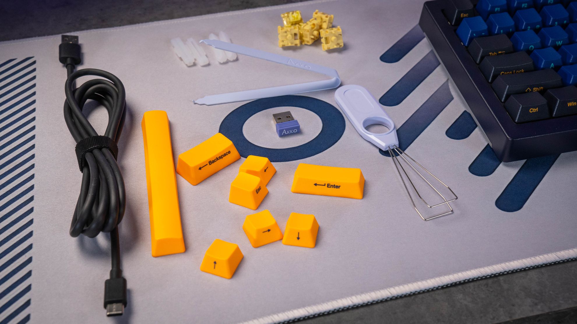 Phụ kiện đi kèm Keypuller, cover chống bụi, 5 switch tặng, dây USB, USB Receiver