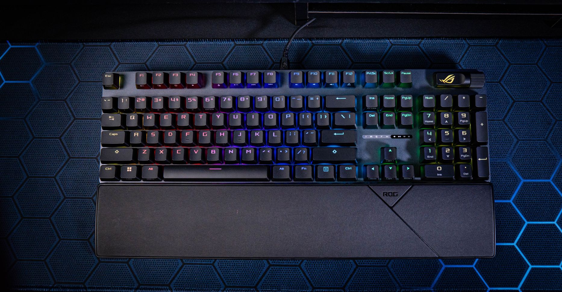 - Tùy chỉnh Đèn LED RGB : Bàn phím tùy chỉnh hệ thống hỗ trợ bàn phím LED RGB, cho phép người dùng thay đổi màu sắc và hiệu ứng ánh sáng theo sở thích cá nhân thông qua phần mềm ASUS Aura Sync.