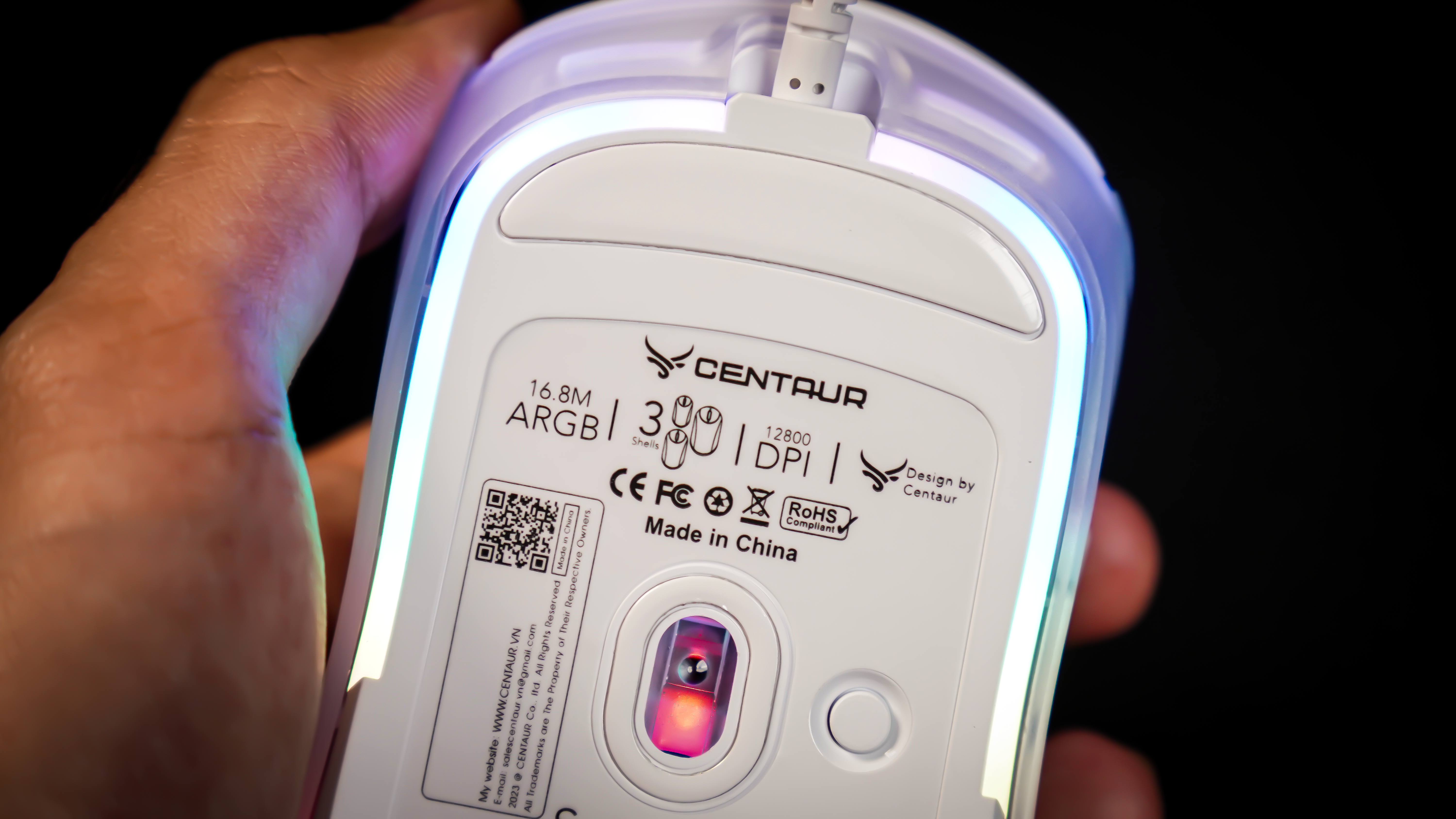 Không chỉ nổi bật về hiệu suất, CHUỘT GAMING CENTAUR CT510X TRẮNG còn được trang bị dải LED RGB có thể tùy chỉnh màu sắc và hiệu ứng theo sở thích. Hệ thống ánh sáng rực rỡ này không chỉ giúp tạo điểm nhấn thẩm mỹ mà còn tăng thêm cảm giác phấn khích khi chơi game, giúp không gian chơi trở nên sống động và chuyên nghiệp hơn.