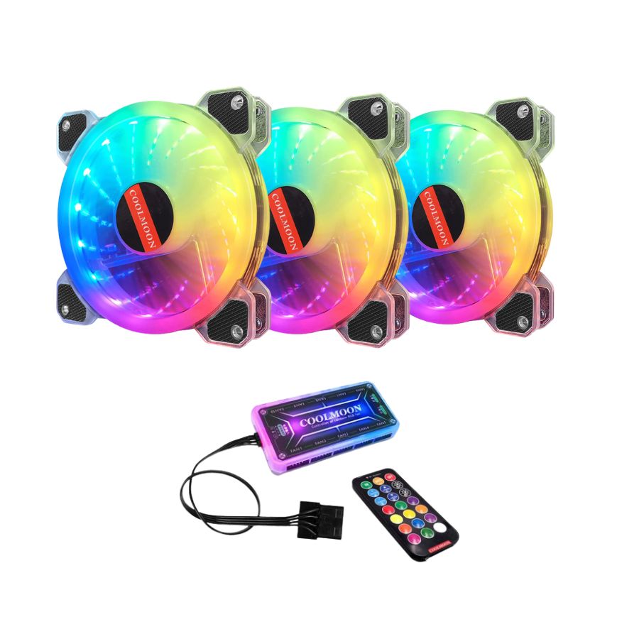 Combo 3 Fan Coolmoon RGB k5 trắng + Hub khiển 2M