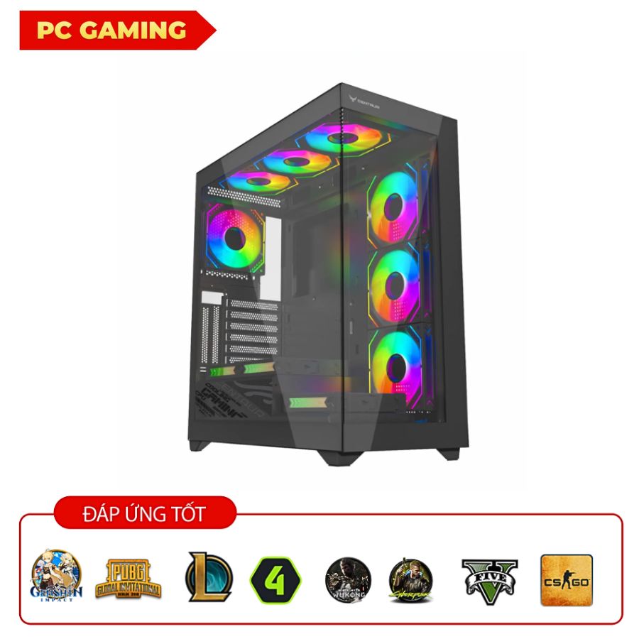 Vỏ máy Nova Black không chỉ có thiết kế đẹp mắt, hiện đại mà còn cung cấp không gian rộng rãi và khả năng tản nhiệt tốt cho các linh kiện bên trong. Hệ thống làm mát được tối ưu giúp duy trì nhiệt độ lý tưởng cho toàn bộ hệ thống, đảm bảo hiệu suất và tuổi thọ của các linh kiện.