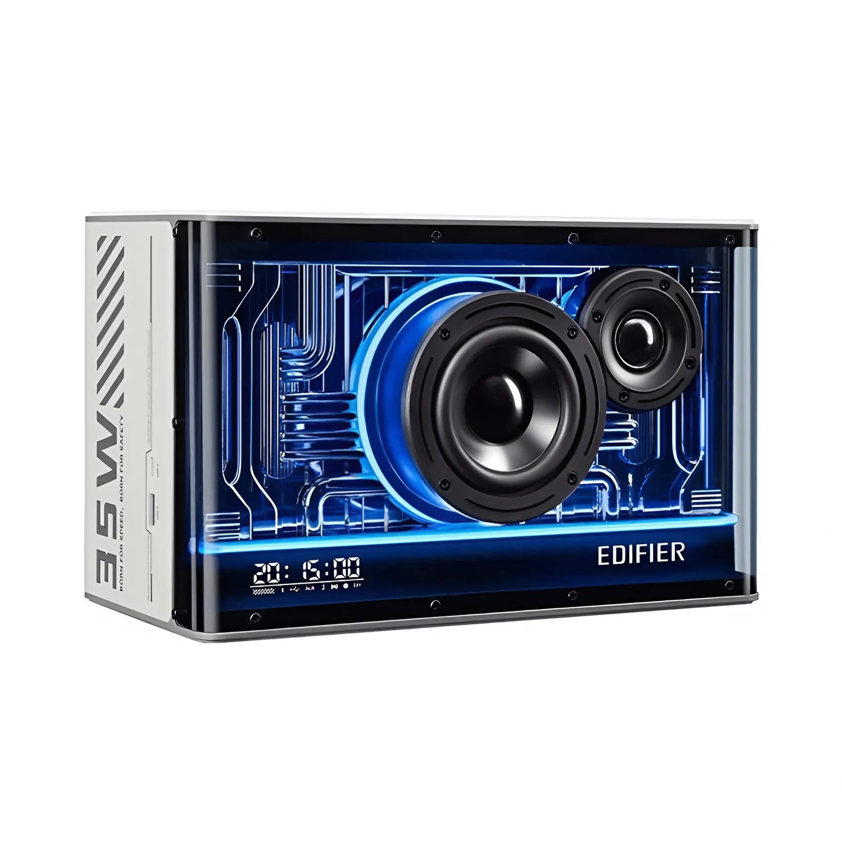 Loa Bluetooth Edifier QD35 White mang thiết kế vuông vức, đậm chất hiện đại với mặt trước hiển thị đèn LED RGB đẹp mắt. Người dùng có thể tùy chỉnh màu sắc và hiệu ứng đèn thông qua ứng dụng Edifier Connect, giúp không gian sử dụng trở nên sống động hơn.