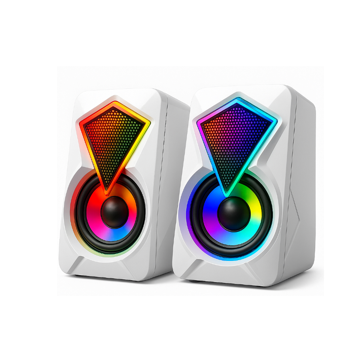 Leerfei E1046 (hoặc Y9077) là mẫu loa vi tính 2.0 phổ thông, có tích hợp LED RGB đổi màu, âm thanh rõ ràng, thiết kế nhỏ gọn và giá cực kỳ dễ tiếp cận. Đây là lựa chọn lý tưởng cho sinh viên, nhân viên văn phòng hoặc người dùng máy tính tại nhà muốn nâng cao trải nghiệm nghe nhạc, xem phim hoặc học online mà không cần đầu tư quá nhiều.