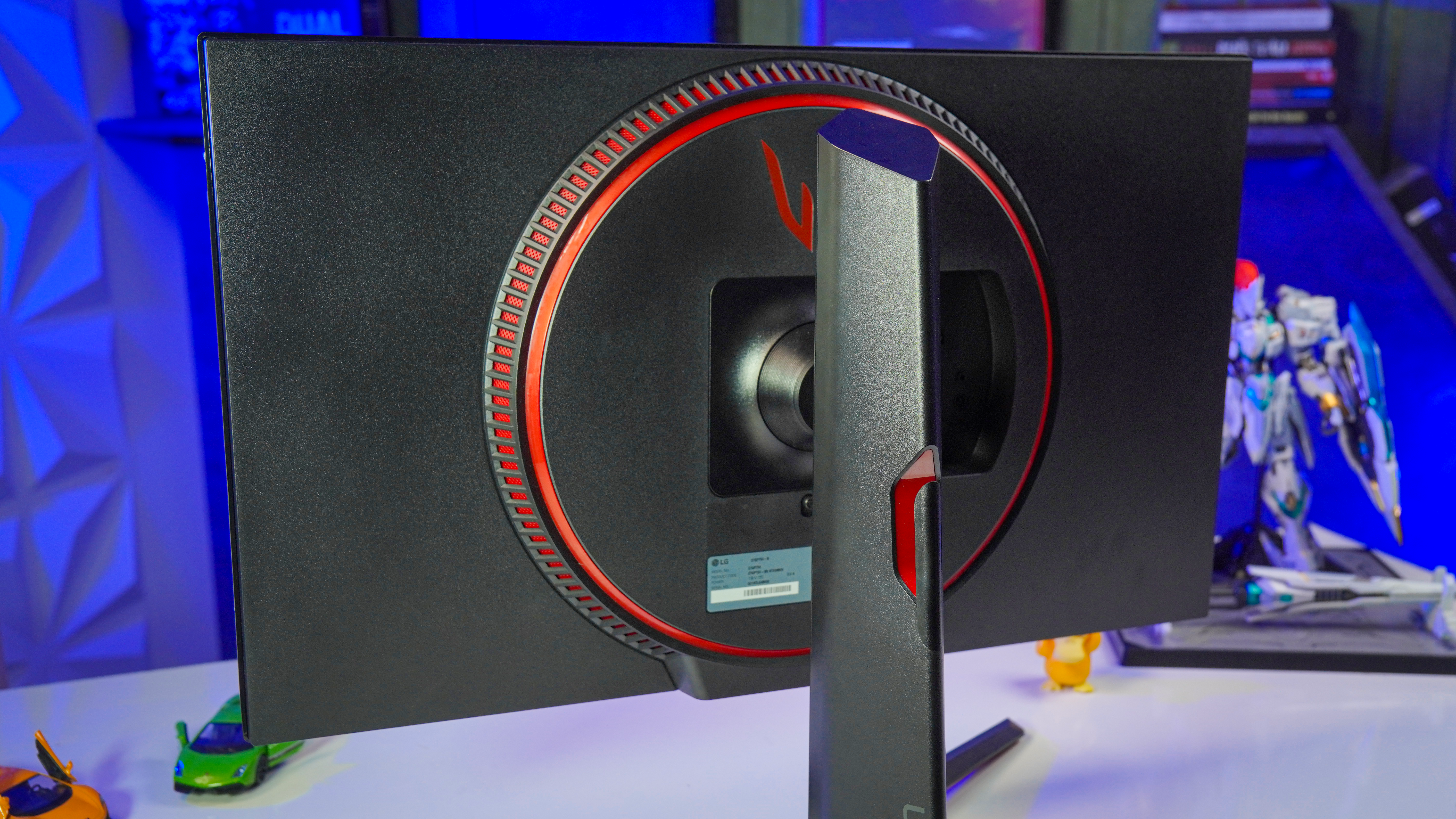 Thiết kế của LG UltraGear 27GP750-B mang phong cách gaming mạnh mẽ với viền màn hình siêu mỏng, giúp tối ưu không gian hiển thị. Mặt lưng có điểm nhấn đỏ đặc trưng của dòng UltraGear, tạo cảm giác hầm hố và chuyên nghiệp.