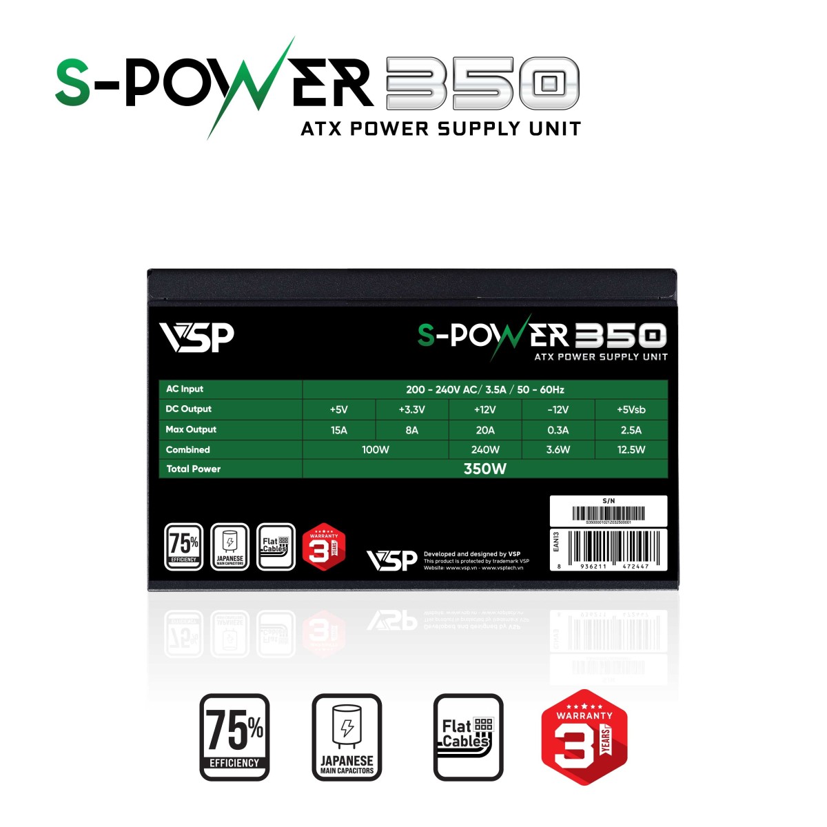 Thông số kỹ thuật nguồn VSP S-POWER 350W
