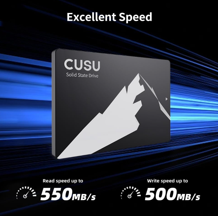 So với ổ cứng HDD truyền thống, SSD CUSU 256GB C300 mang lại sự khác biệt rõ rệt về tốc độ phản hồi. Sản phẩm hỗ trợ tốc độ đọc lên đến khoảng 500 – 520 MB/s và tốc độ ghi lên đến khoảng 420 – 430 MB/s, giúp rút ngắn thời gian khởi động Windows, mở ứng dụng và sao chép dữ liệu.