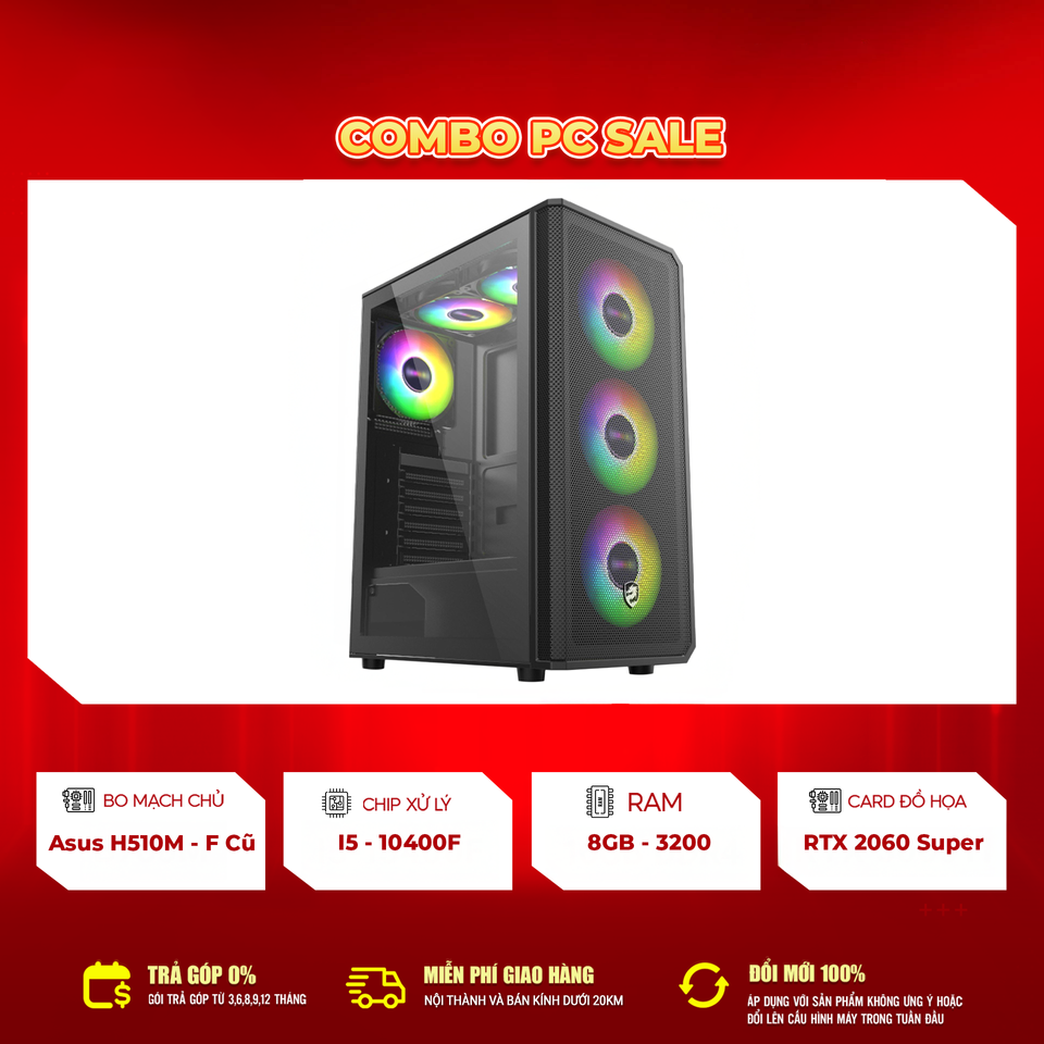 PC i5-10400F + RTX 2060 Super là lựa chọn tuyệt vời trong phân khúc gaming tầm trung. Dàn máy mang lại trải nghiệm mượt mà, ổn định, chơi game tốt và có khả năng nâng cấp dễ dàng trong tương lai. Với mức giá hợp lý và bảo hành rõ ràng, đây là bộ PC phù hợp cho mọi nhu cầu từ học tập đến giải trí.