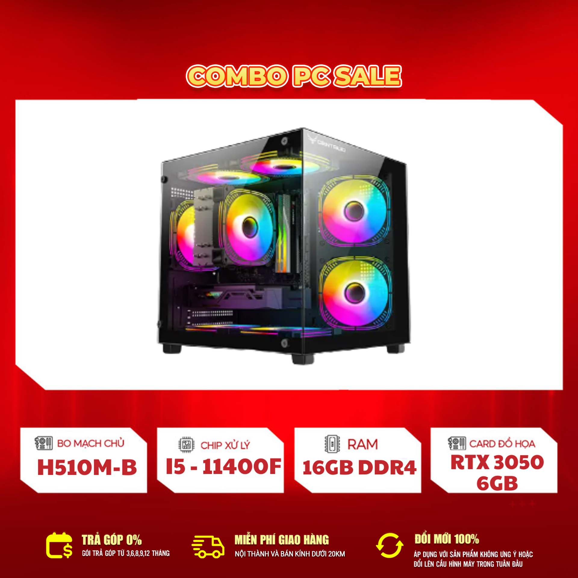 Bộ PC Gaming i5-11400F + RTX 3050 được thiết kế để mang lại sự cân bằng hoàn hảo giữa hiệu năng – giá trị – độ bền. Với sức mạnh từ CPU Intel thế hệ 11 kết hợp card đồ họa RTX 3050 6GB GDDR6, RAM 16GB tốc độ cao cùng ổ cứng SSD NVMe, bộ PC này đáp ứng mượt mà từ chơi game eSports, AAA cho đến thiết kế đồ họa, học tập và công việc văn phòng.