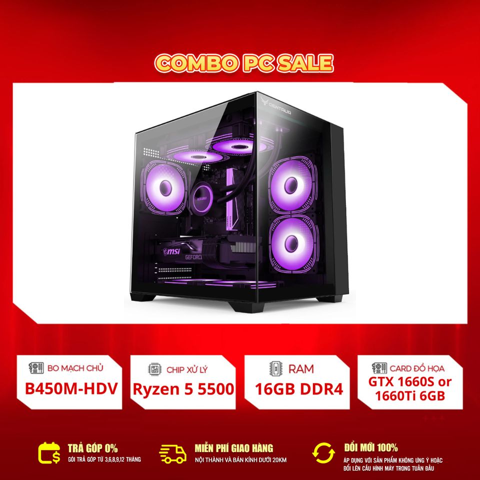 PC Gaming Ryzen 5 5500 + RTX 1660S | Hiệu Năng Mượt Mà – Thiết Kế Ấn Tượng