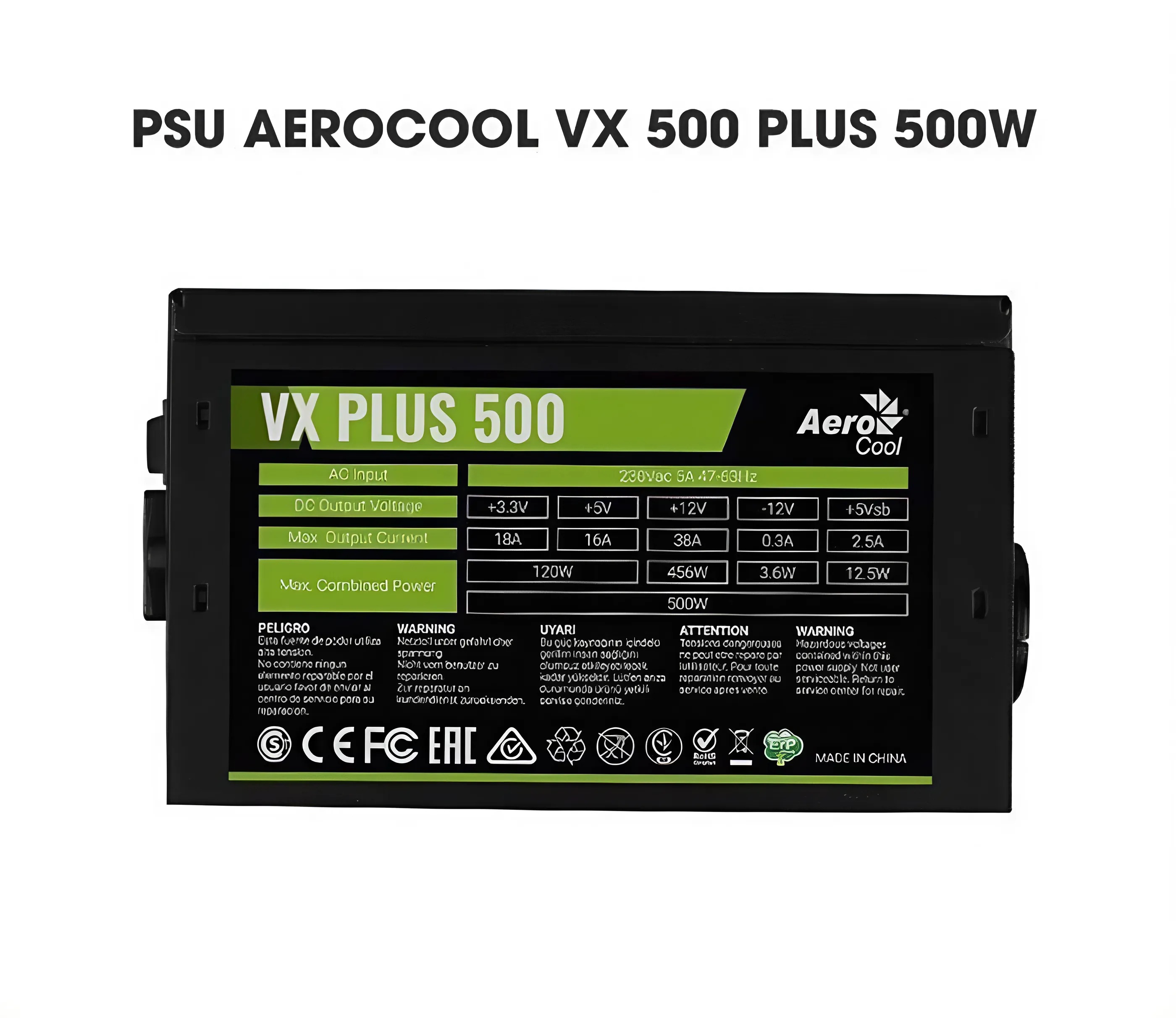 PSU - NGUỒN MÁY TÍNH AEROCOOL VX PLUS 500 500W (CŨ) là một bộ nguồn phổ thông dành cho các hệ thống máy tính văn phòng và gaming tầm trung. Với công suất 500W, sản phẩm đáp ứng được nhu cầu cơ bản nhưng không có chứng nhận 80 Plus, dẫn đến hiệu suất chưa thực sự tối ưu.
