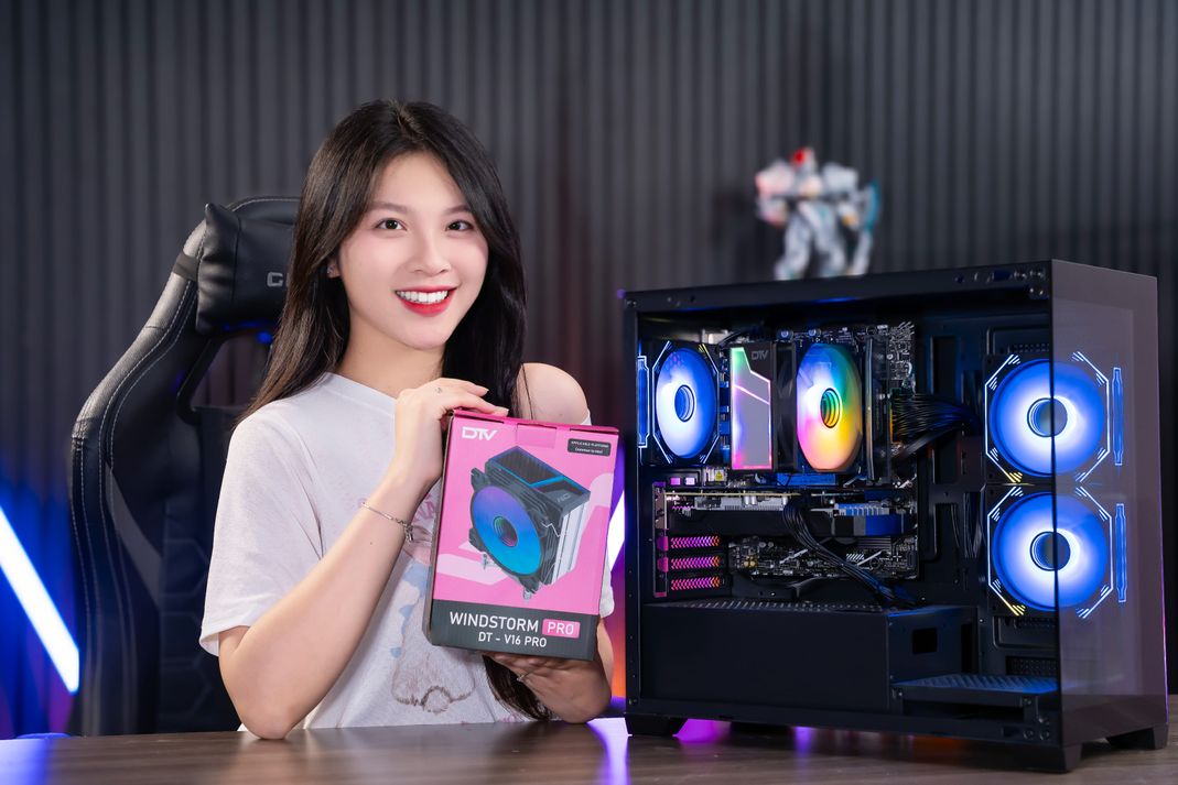 Windstorm Pro DTV-V16 Pro không chỉ mạnh mẽ mà còn đẹp mắt với dải LED RGB vô cực, hiệu ứng ánh sáng lan tỏa 360°, giúp tản nhiệt trở thành điểm nhấn nổi bật trong hệ thống PC. Phù hợp cho các case có mặt kính trong suốt, giúp tôn lên phong cách gaming chuyên nghiệp.