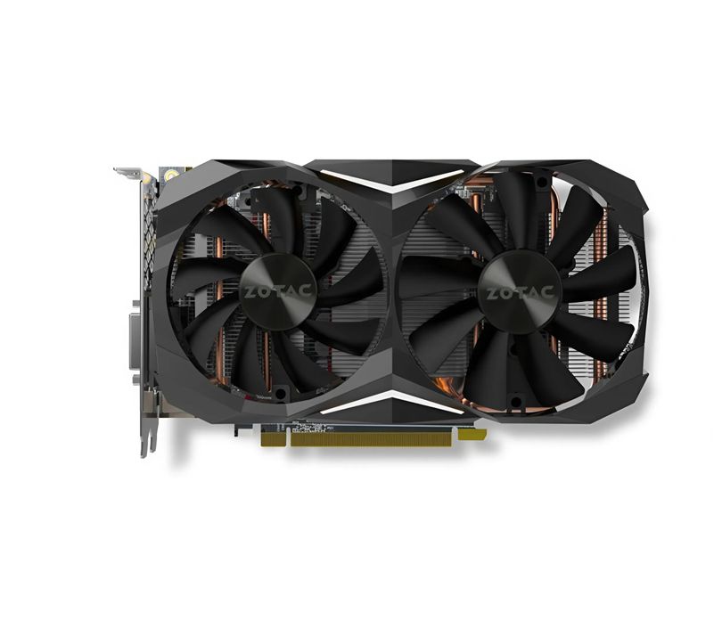 ZOTAC GTX 1070 Ti có thiết kế gọn gàng, chắc chắn, phù hợp với nhiều bộ case từ ATX đến ITX. Card sử dụng hệ thống tản nhiệt kép, với 2 quạt lớn, lá nhôm tản nhiệt dày và ống đồng dẫn nhiệt trực tiếp, giúp giữ nhiệt độ ổn định dưới 75 độ C ngay cả khi chơi game nặng. Công nghệ quạt tự động điều chỉnh tốc độ giúp card hoạt động êm ái, không gây quá nhiều tiếng ồn khi tải nhẹ. Điều này giúp tối ưu hóa giữa hiệu suất làm mát và độ bền linh kiện, kéo dài tuổi thọ VGA.