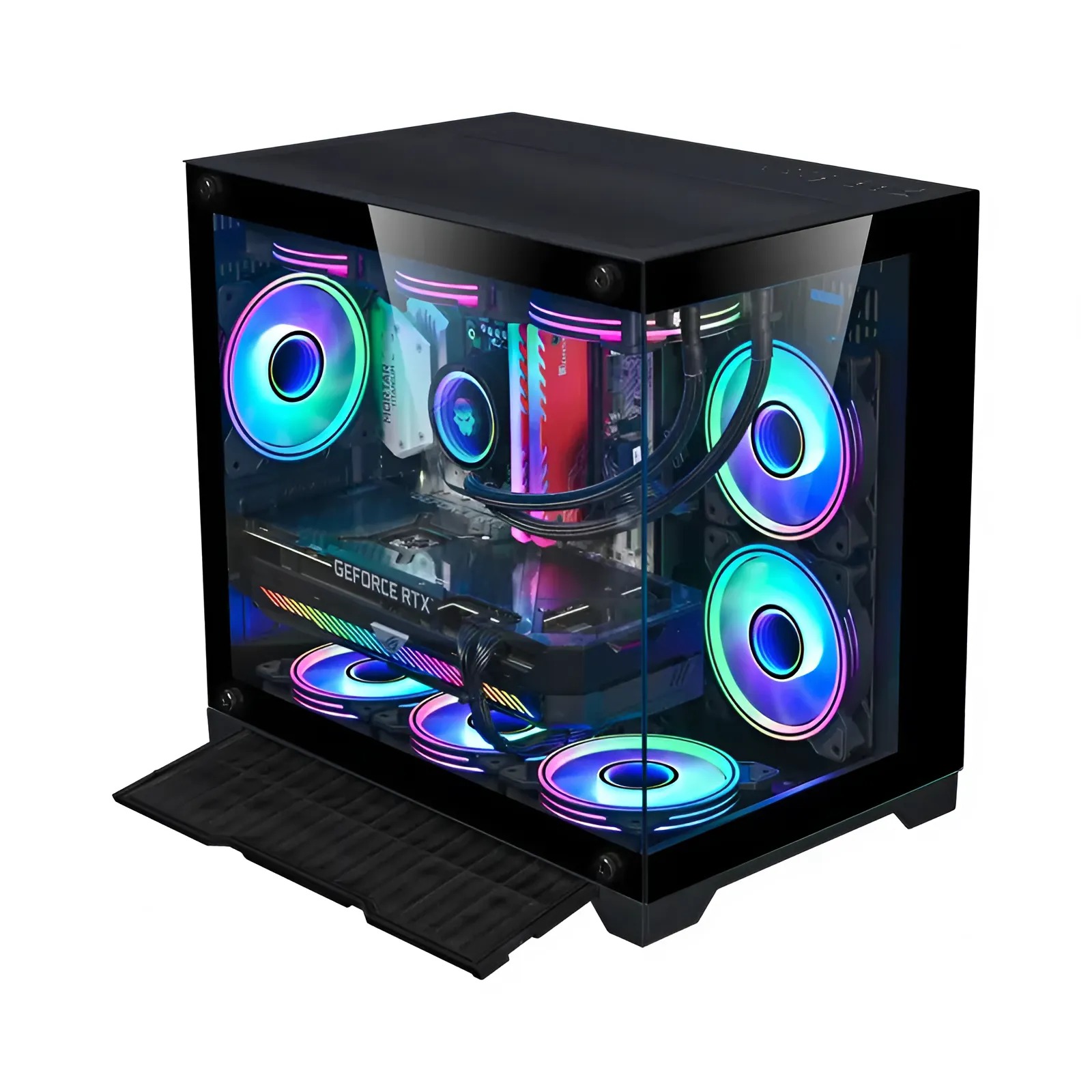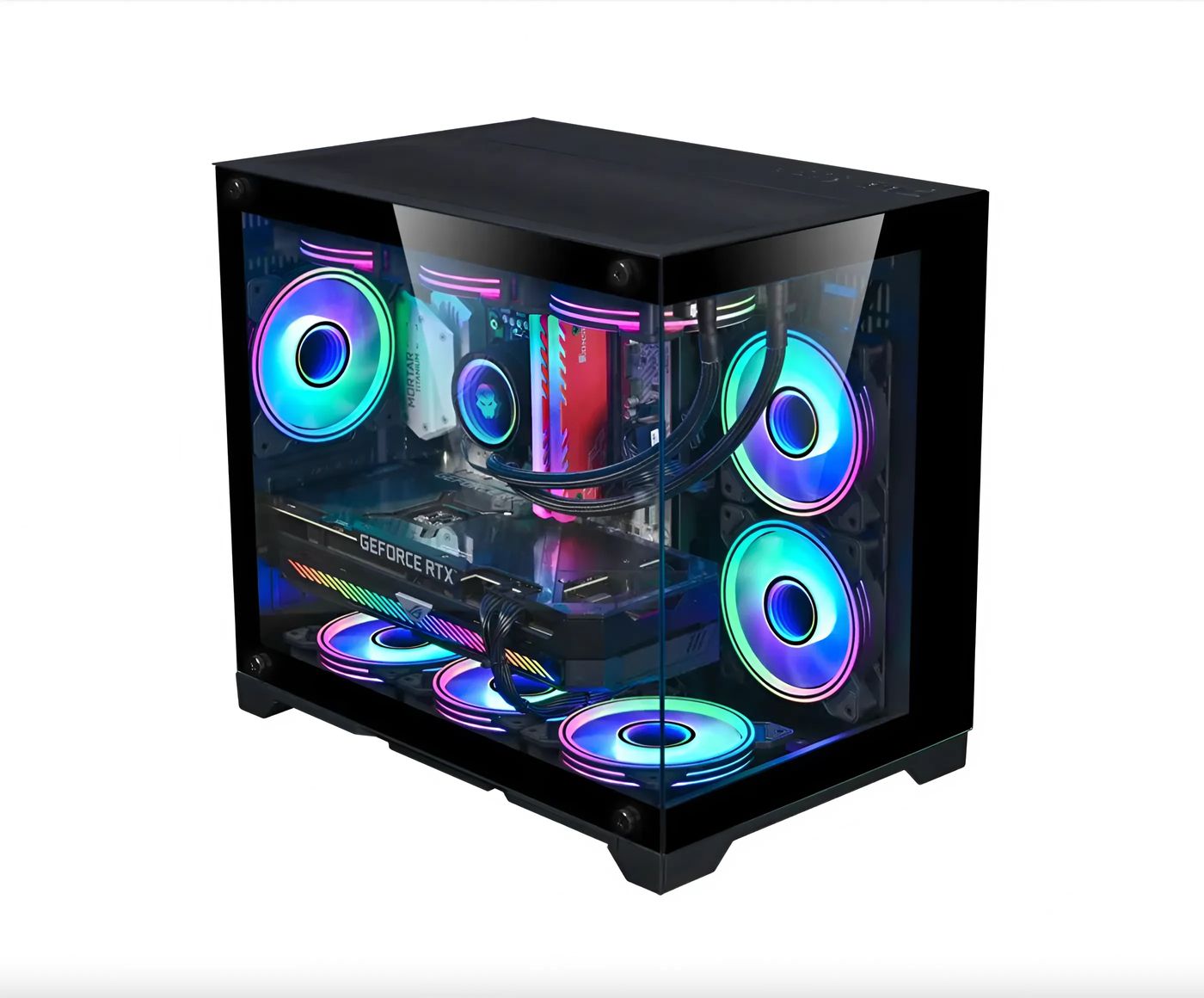 Mặt hông kính cường lực trong suốt giúp khoe trọn vẻ đẹp của dàn đèn RGB bên trong, tạo điểm nhấn ấn tượng cho góc máy. Phần khung được gia công chắc chắn, đảm bảo độ bền lâu dài. Với kích thước mid-tower, sản phẩm này phù hợp với nhiều hệ thống từ phổ thông đến cao cấp.