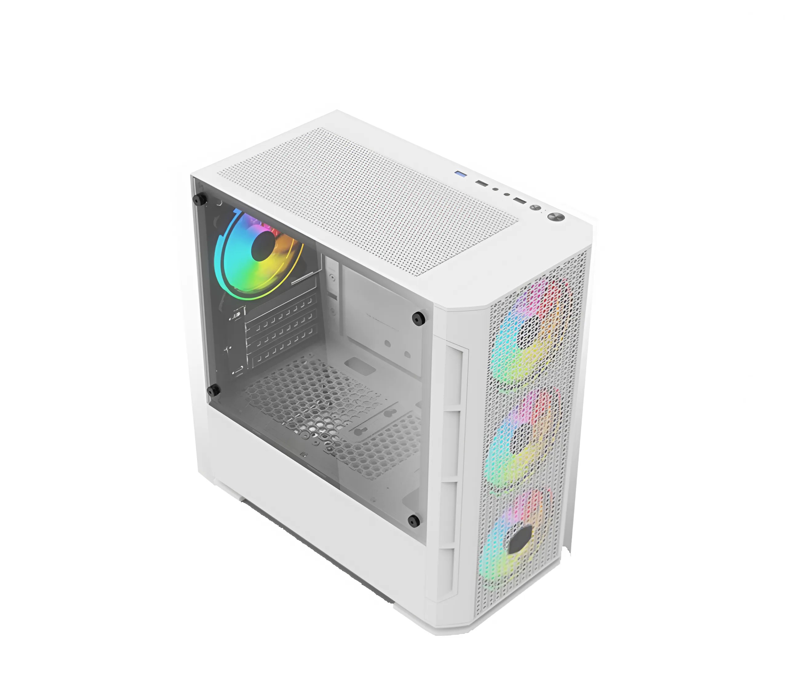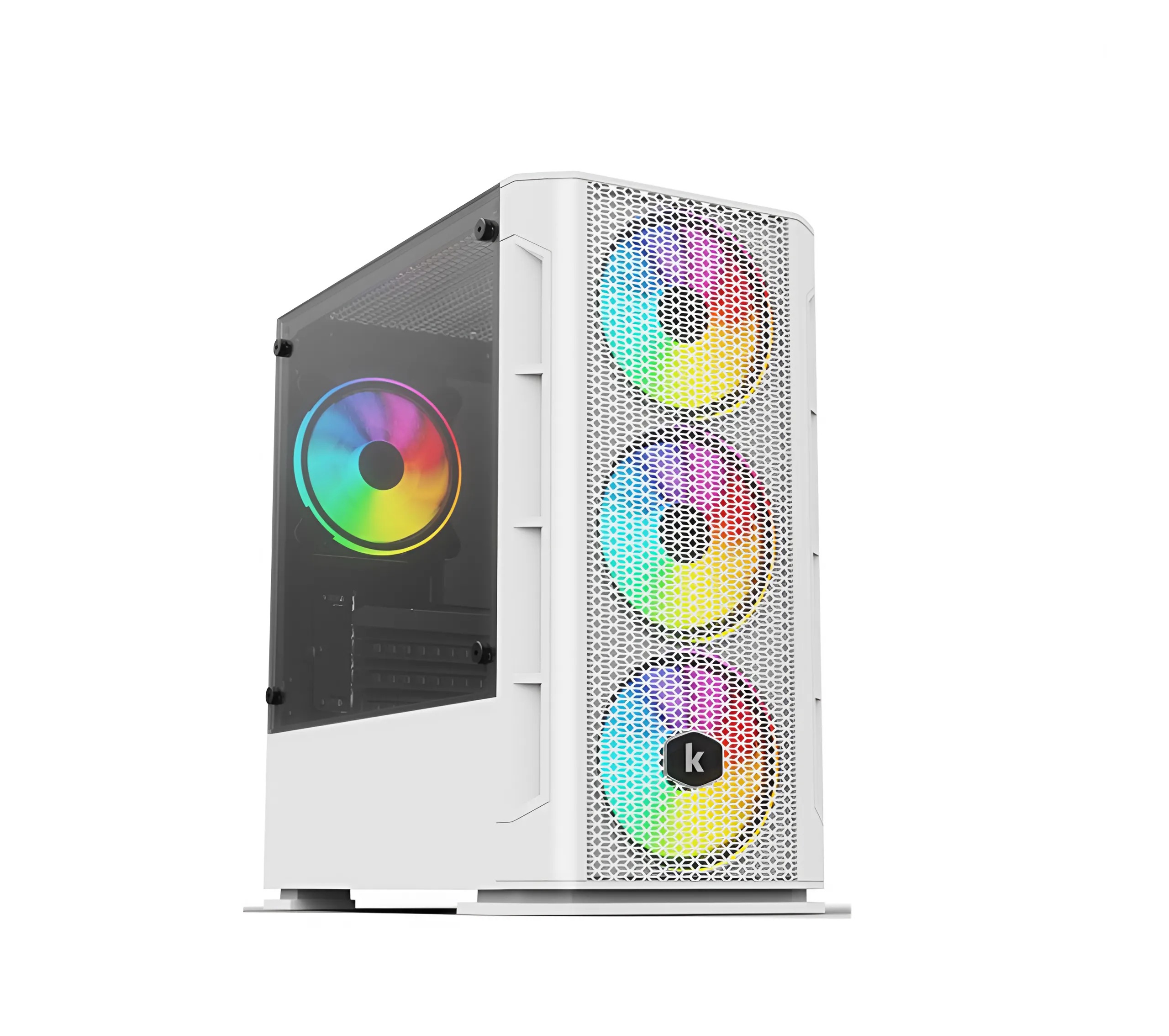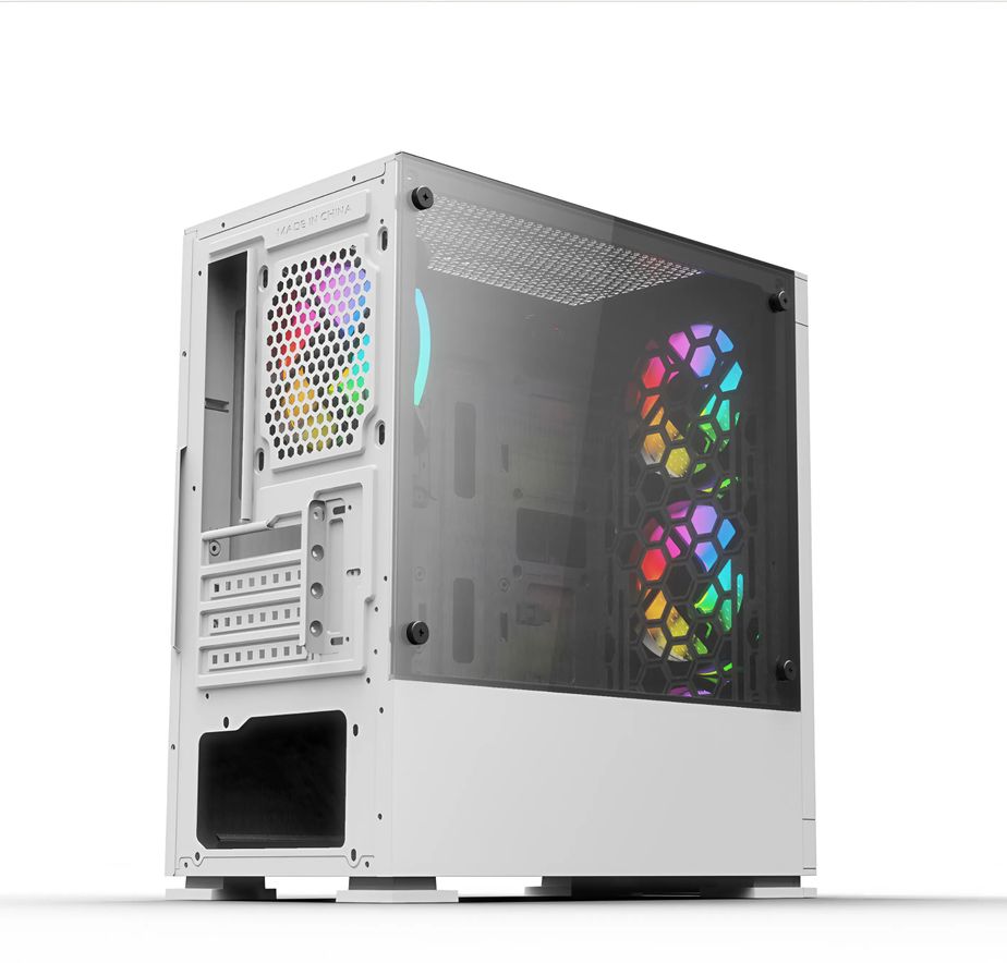 Vỏ case KENOO ESPORT G362 WHITE sở hữu thiết kế hiện đại với tông màu trắng chủ đạo, mang lại vẻ đẹp tinh tế cho góc máy. Mặt trước được trang bị lưới kim loại giúp tăng cường luồng không khí và hiệu suất tản nhiệt. Mặt bên là kính cường lực trong suốt, cho phép trưng bày các linh kiện bên trong một cách rõ ràng và ấn tượng.
