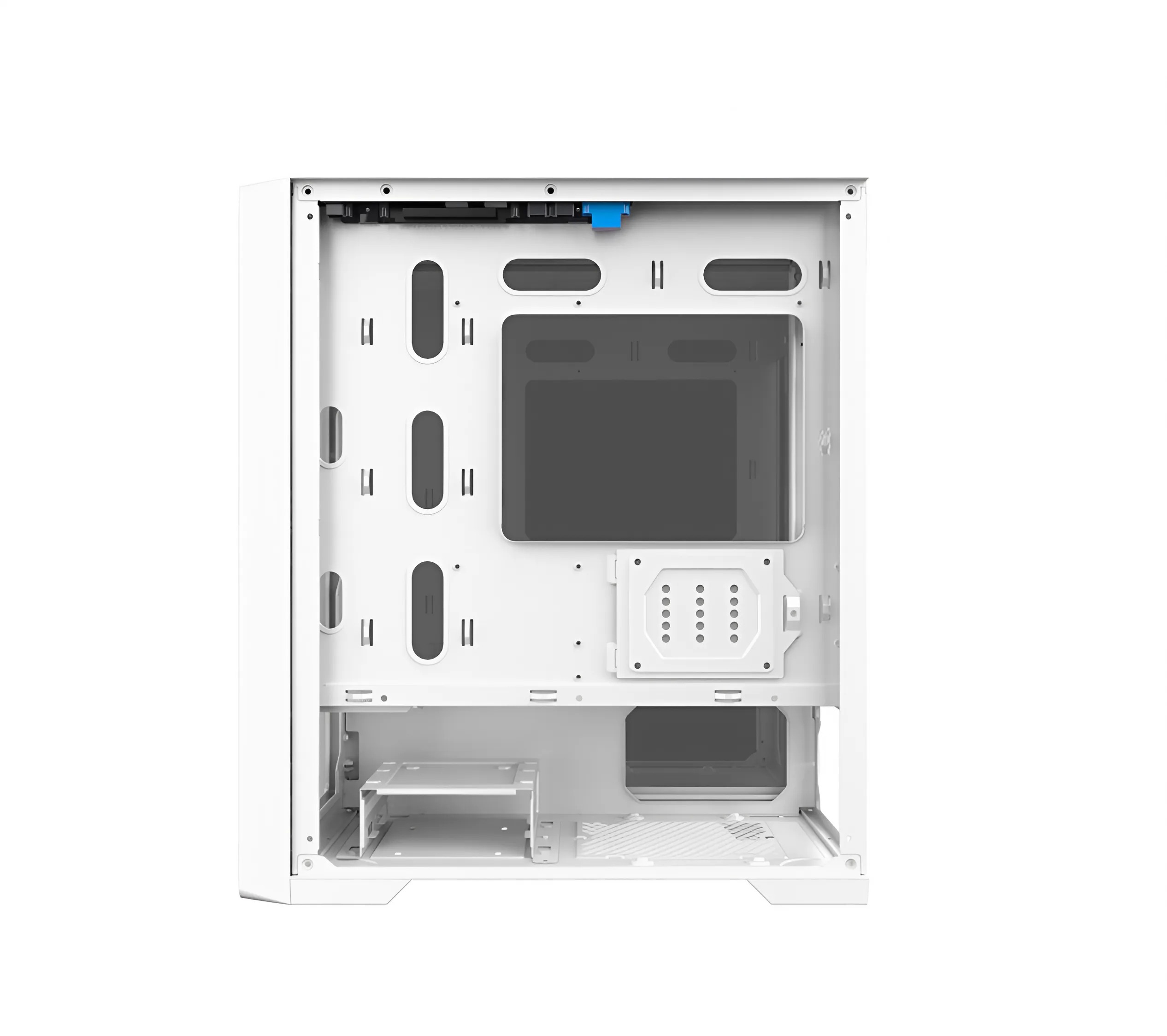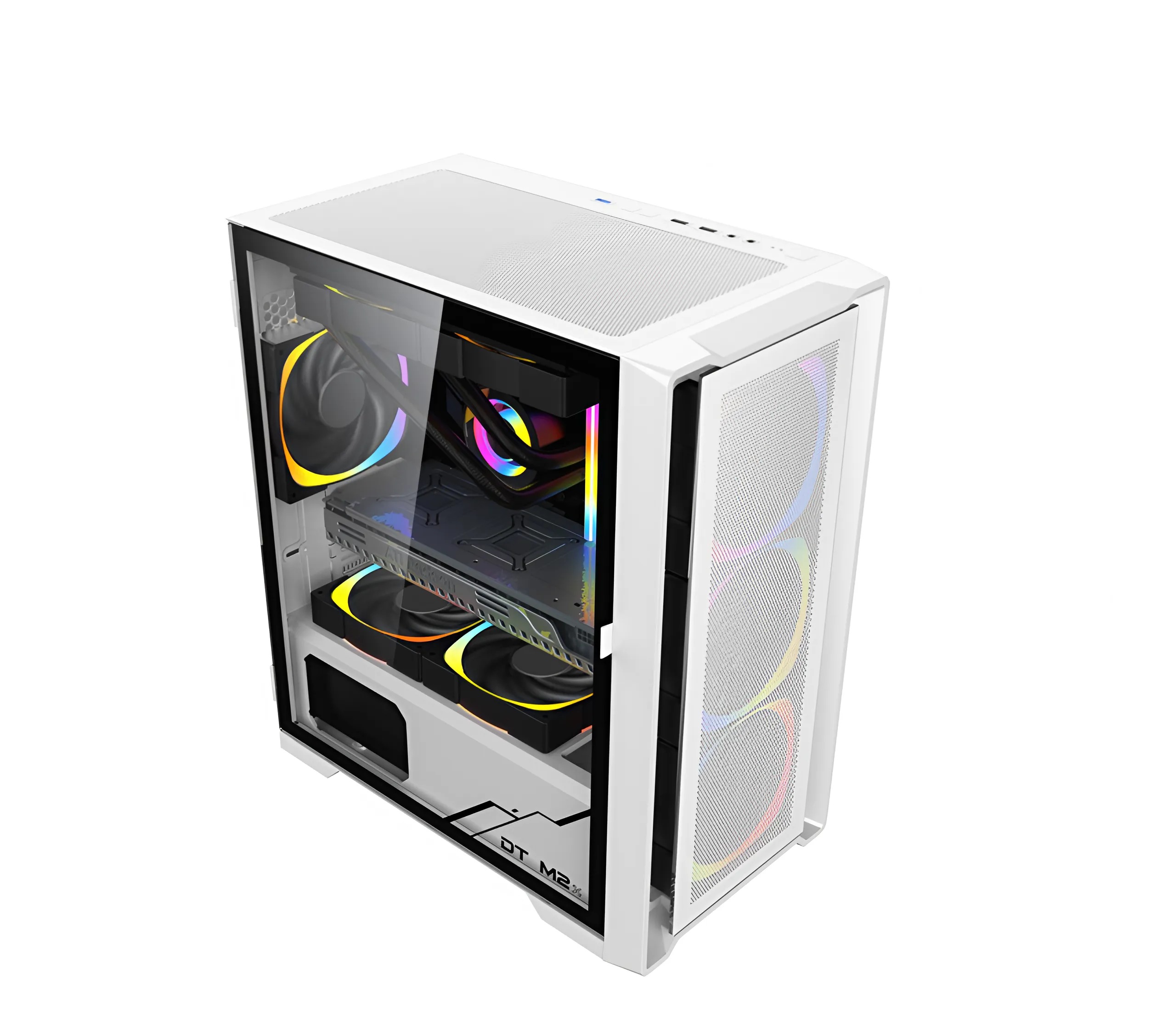 Vỏ case KENOO ESPORT M500 - 3F màu trắng có thiết kế đơn giản nhưng vẫn rất ấn tượng. Mặt trước được làm bằng lưới kim loại giúp tối ưu luồng không khí, giảm nhiệt độ bên trong case. Mặt bên bằng kính cường lực chắc chắn, giúp khoe trọn bộ linh kiện bên trong. Với tông màu trắng chủ đạo, sản phẩm mang lại cảm giác tinh tế và hiện đại, phù hợp với nhiều phong cách setup PC.
