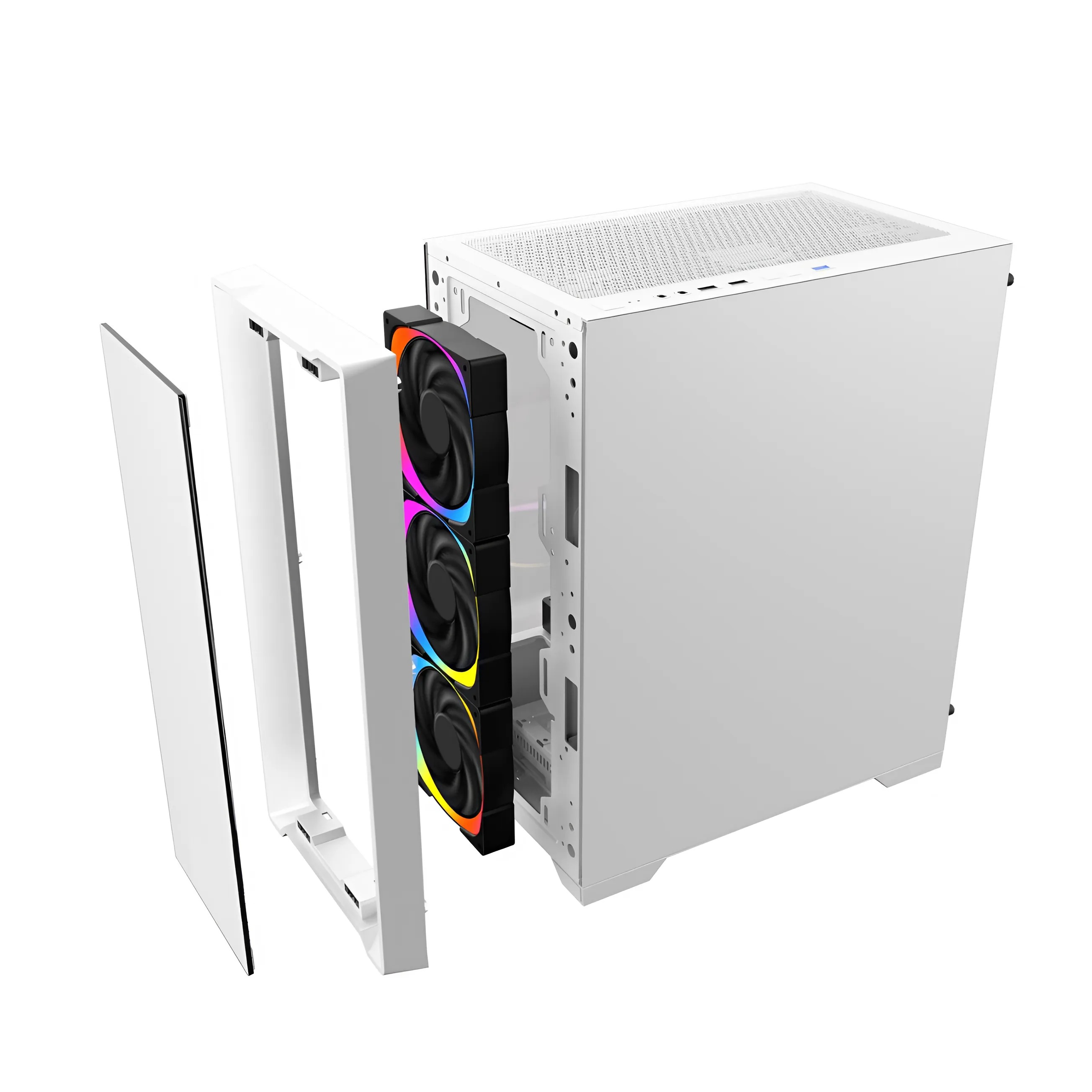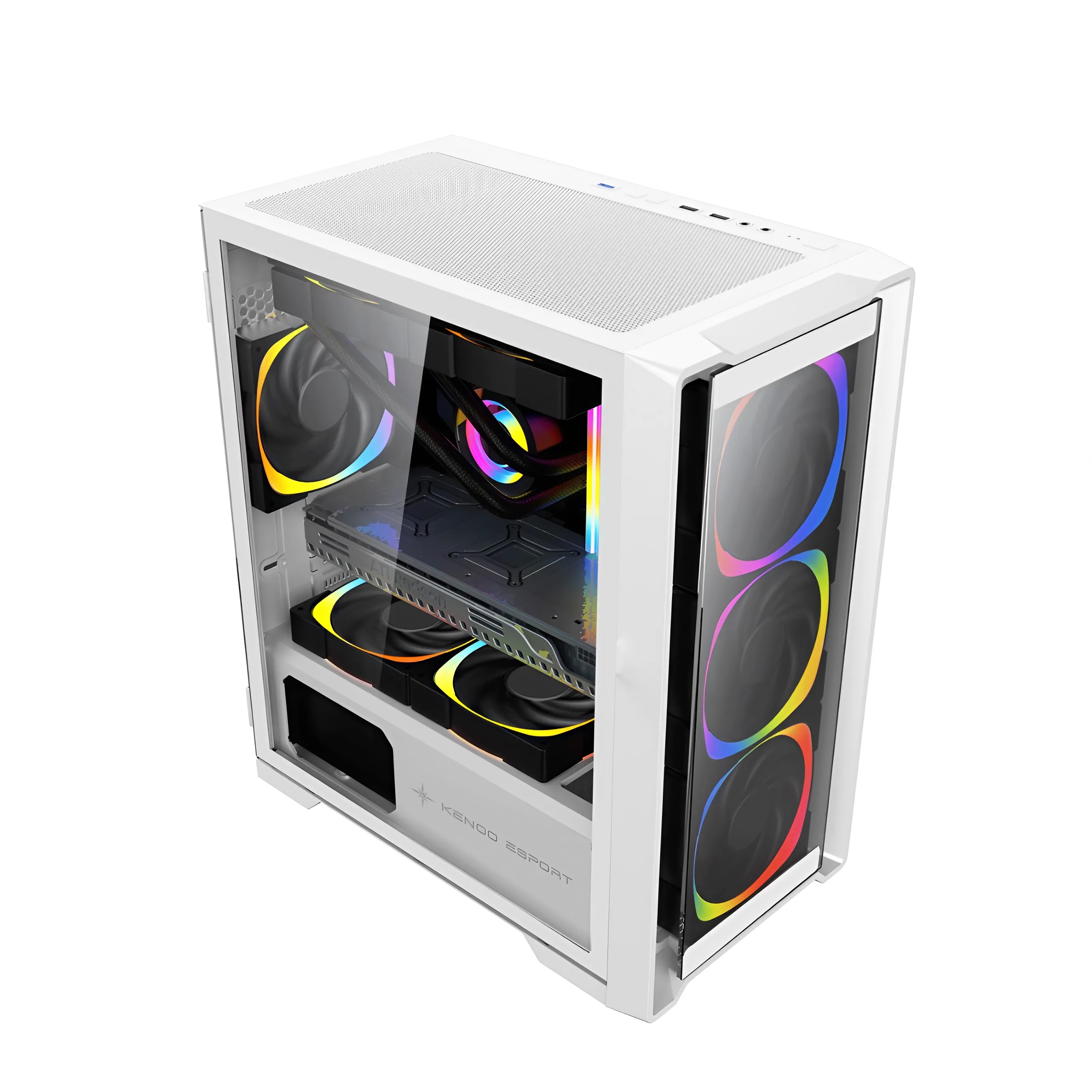 Vỏ case KENOO ESPORT MK500 - 3F sở hữu thiết kế đơn giản nhưng không kém phần tinh tế. Tông màu trắng chủ đạo mang đến vẻ ngoài thanh lịch, phù hợp với cả dàn PC gaming lẫn máy tính làm việc. Mặt kính cường lực trong suốt giúp người dùng dễ dàng khoe trọn vẻ đẹp của linh kiện bên trong, đặc biệt khi kết hợp với hệ thống LED RGB. Với thiết kế Mid Tower nhỏ gọn nhưng tối ưu không gian, MK500 phù hợp với nhiều môi trường sử dụng khác nhau, từ góc gaming cá nhân đến không gian văn phòng hiện đại.