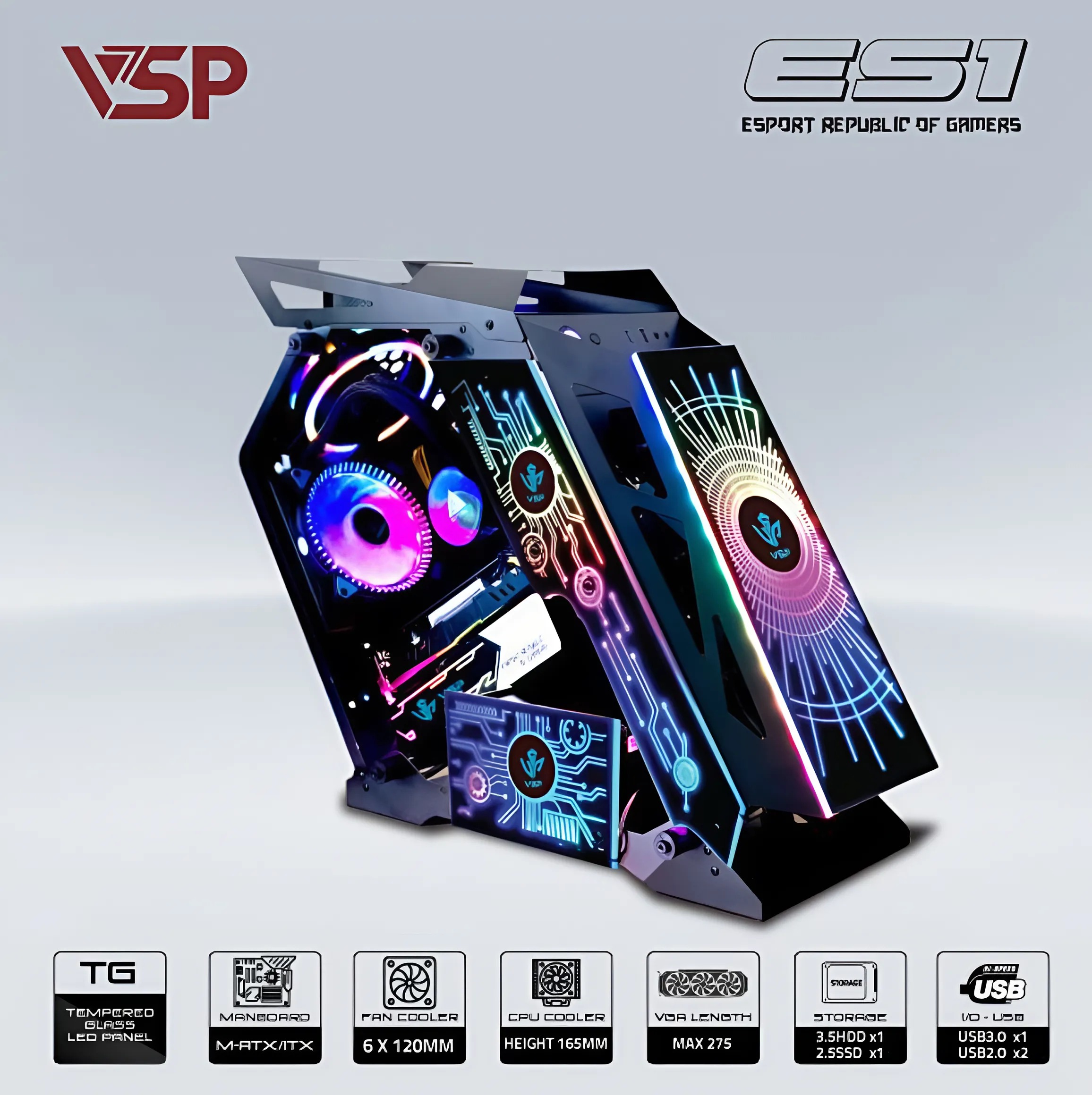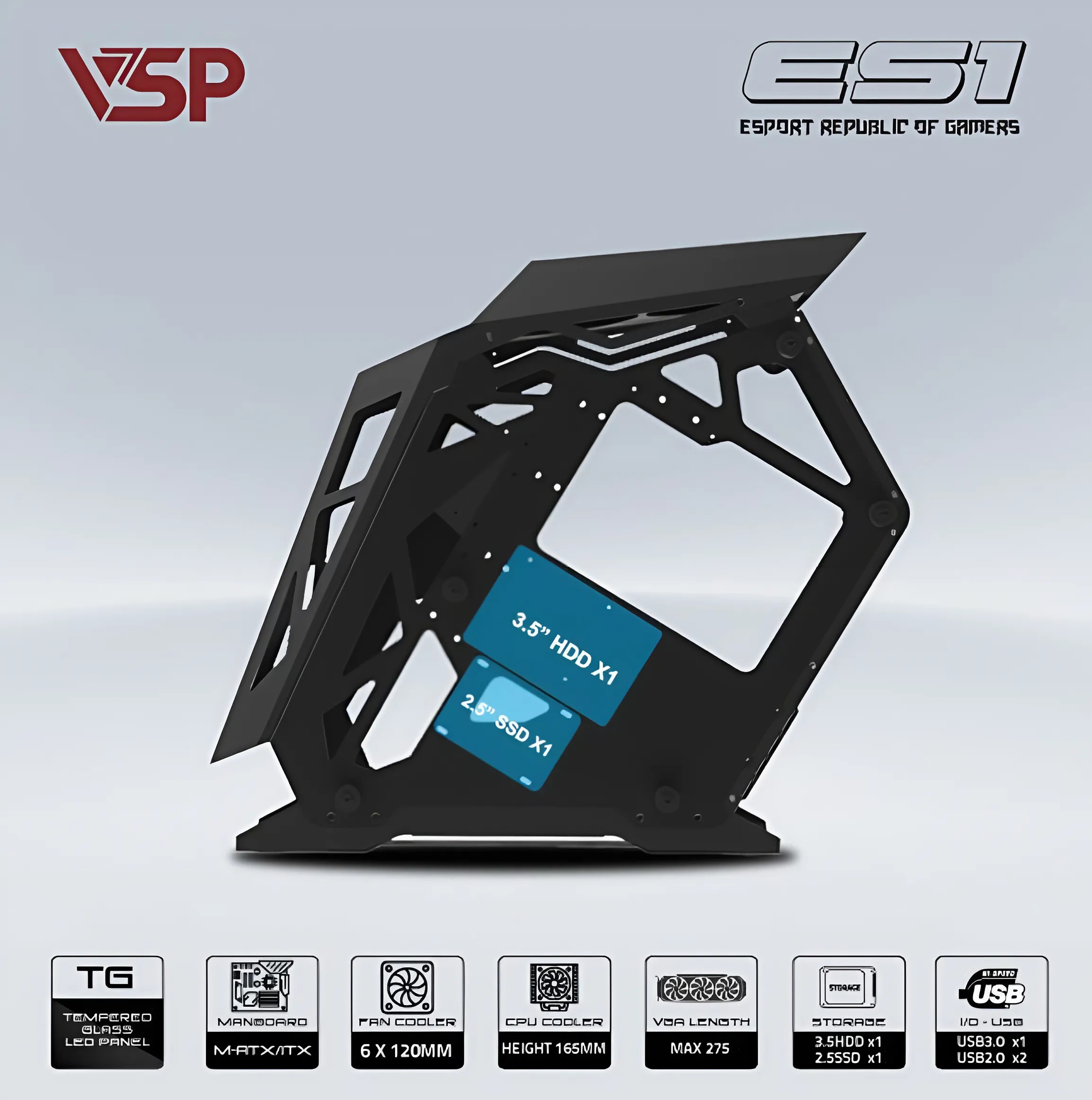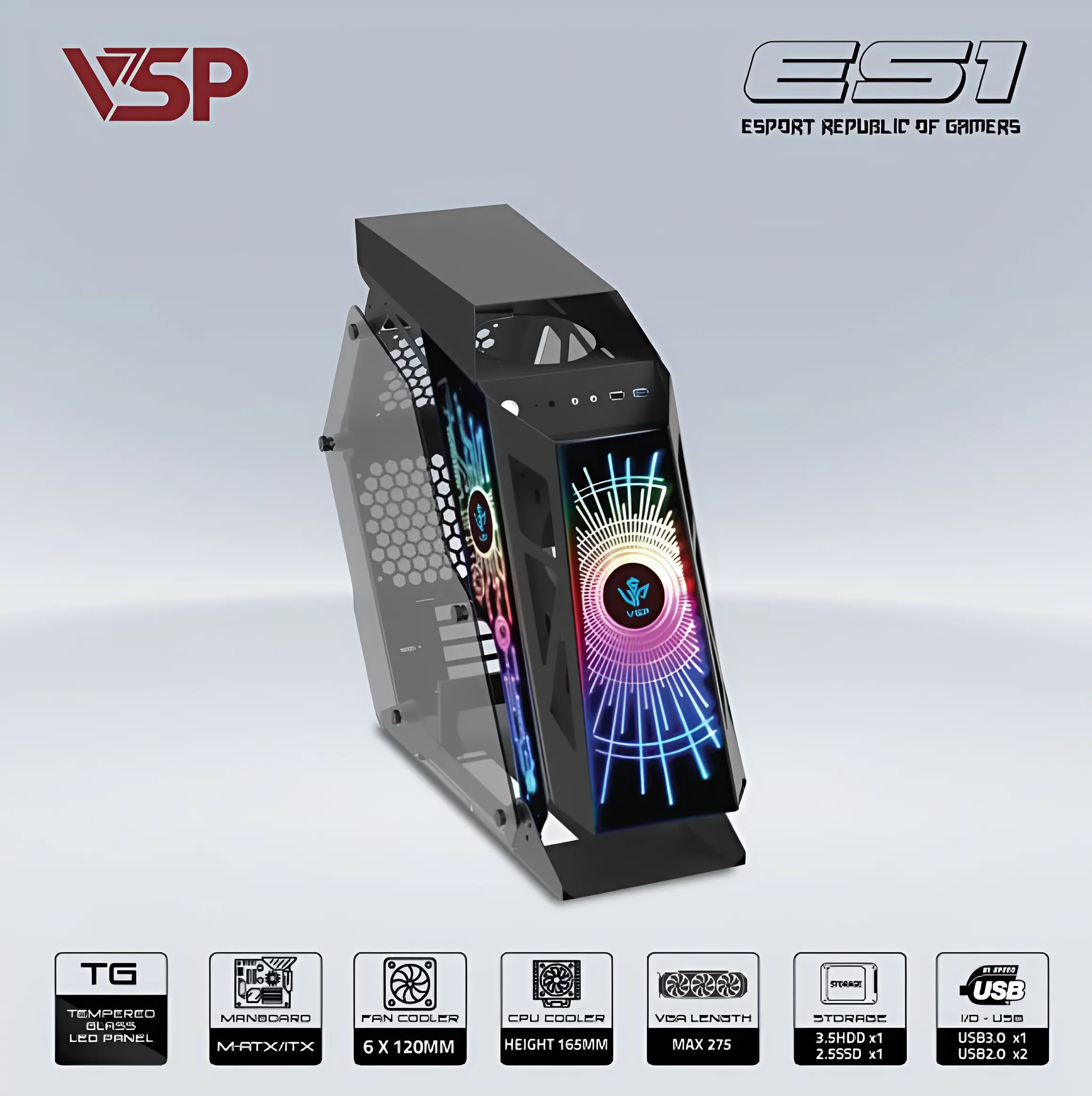 VỎ CASE MÁY TÍNH VSP E-ROG ES1 ĐEN