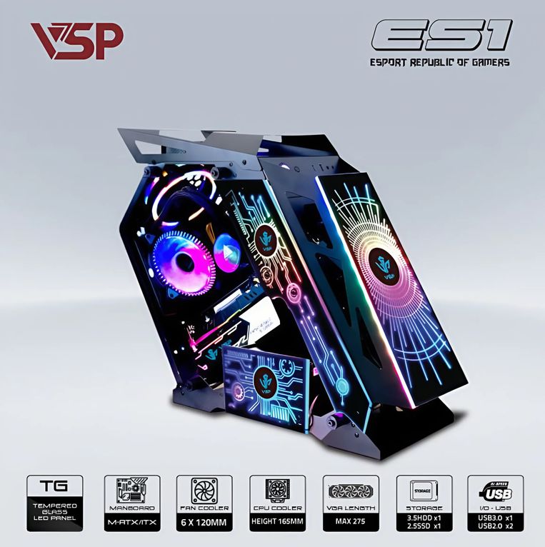 VSP E-ROG ES1 Đen là một lựa chọn đáng cân nhắc trong phân khúc case gaming tầm trung. Với thiết kế mạnh mẽ, khả năng làm mát tốt, hỗ trợ linh kiện đa dạng và không gian lắp đặt rộng rãi, đây là một sản phẩm phù hợp cho cả game thủ lẫn người dùng phổ thông muốn build một bộ PC đẹp mắt và hiệu quả.