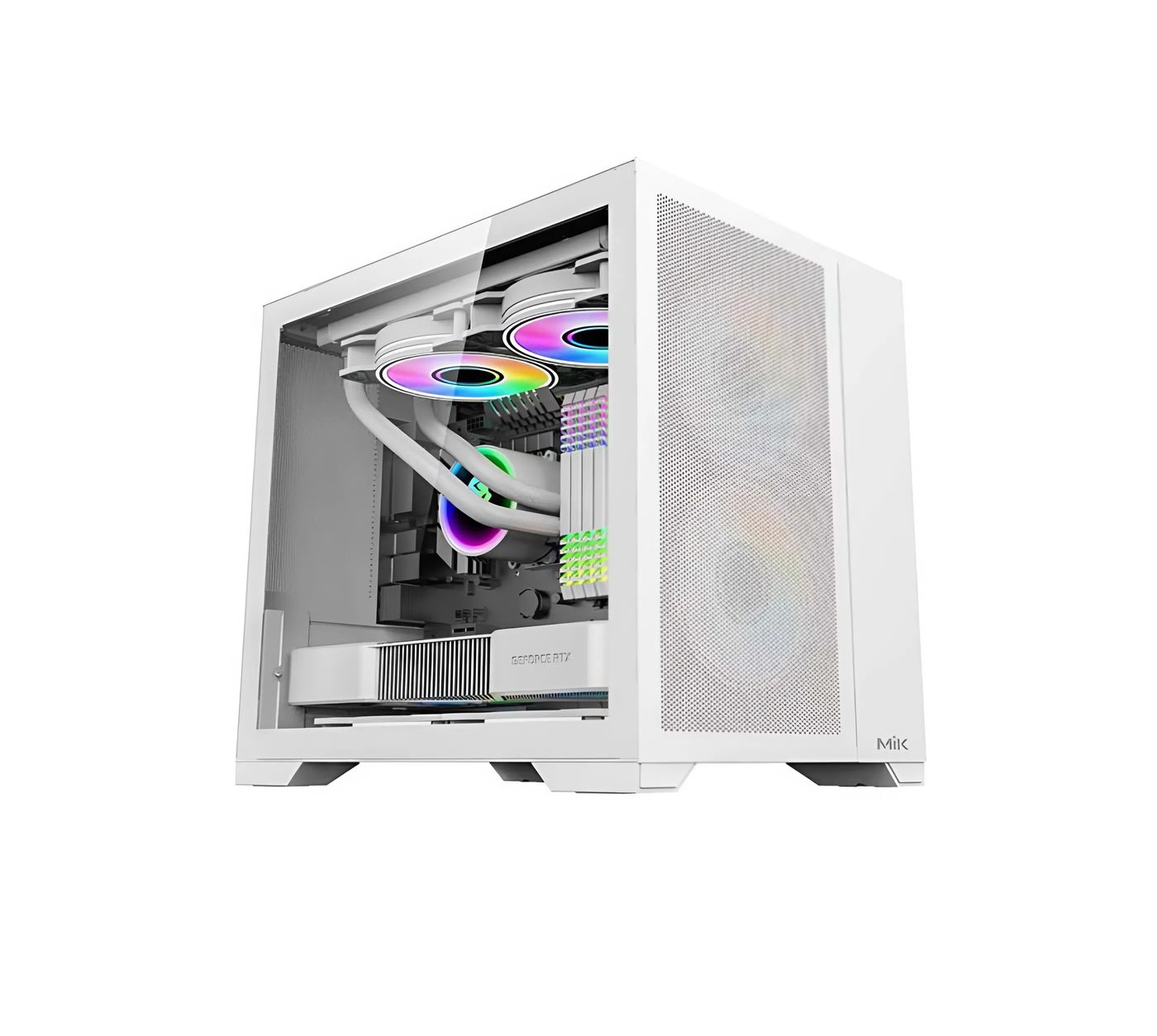 Một trong những điểm mạnh của MIK LV12 là khả năng hỗ trợ hệ thống làm mát linh hoạt. Với tối đa 6 quạt có thể lắp đặt, vỏ case này giúp tối ưu luồng gió, giảm nhiệt độ hiệu quả. Nếu muốn nâng cấp lên tản nhiệt nước, người dùng có thể lắp radiator 240mm ở mặt trước và 120mm ở mặt sau.