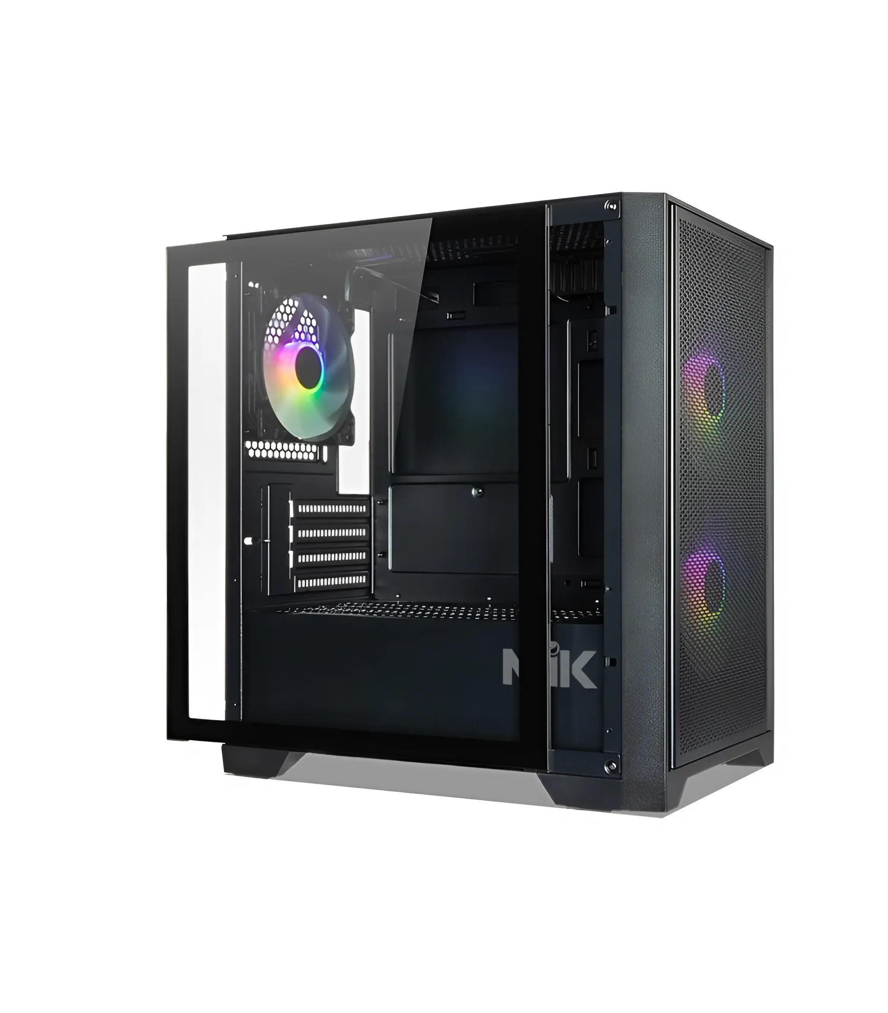 Đi kèm 3 quạt ARGB mặt trước, giúp tăng hiệu suất tản nhiệt ngay từ đầu. Nếu cần cải thiện luồng gió, người dùng có thể bổ sung quạt trên nóc và mặt sau. Khoang nguồn riêng biệt, giúp hạn chế bụi bẩn và tối ưu không gian lắp đặt.