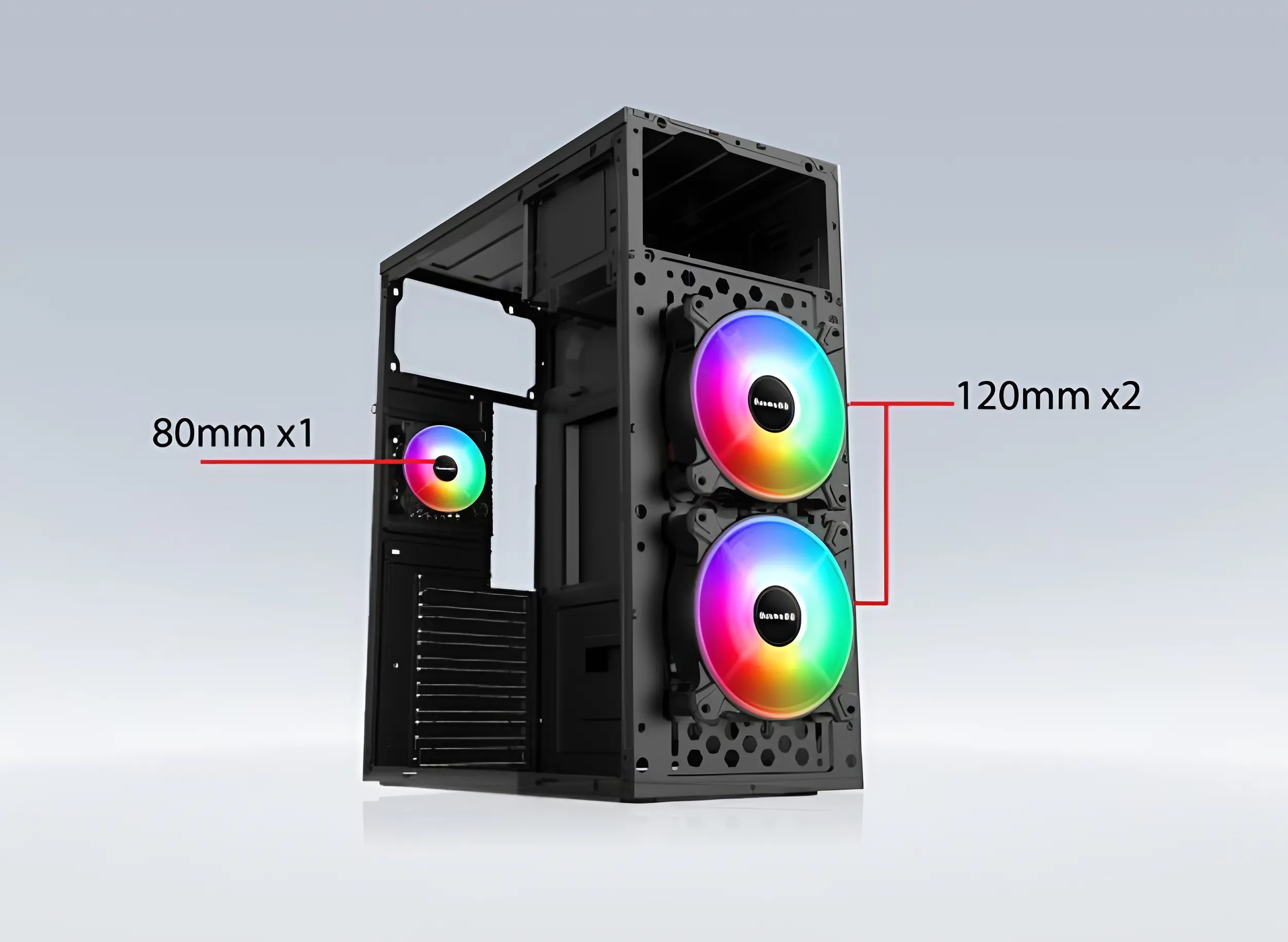 Khả năng làm mát là một trong những yếu tố quan trọng của một vỏ case tốt, và VSP V3718 đáp ứng tốt tiêu chí này. Với thiết kế hỗ trợ 2 quạt làm mát, vỏ case giúp luồng khí lưu thông tốt hơn, hạn chế tình trạng quá nhiệt cho linh kiện bên trong.