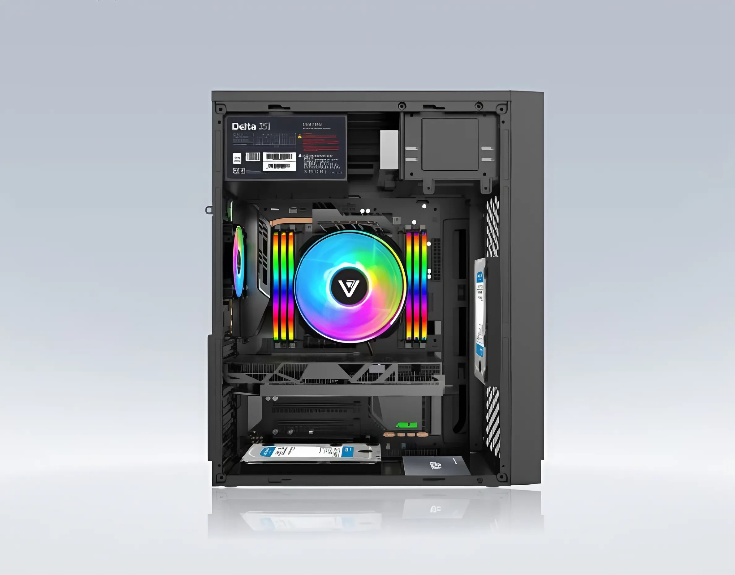 Được làm từ thép SPCC dày, vỏ case có độ cứng cáp cao, bảo vệ linh kiện bên trong khỏi các tác động bên ngoài. Lớp sơn tĩnh điện giúp tăng độ bền, hạn chế trầy xước, bong tróc theo thời gian. Bên cạnh đó, mặt hông thiết kế dạng kính cường lực trong suốt, giúp người dùng dễ dàng quan sát hệ thống bên trong mà vẫn đảm bảo độ chắc chắn.