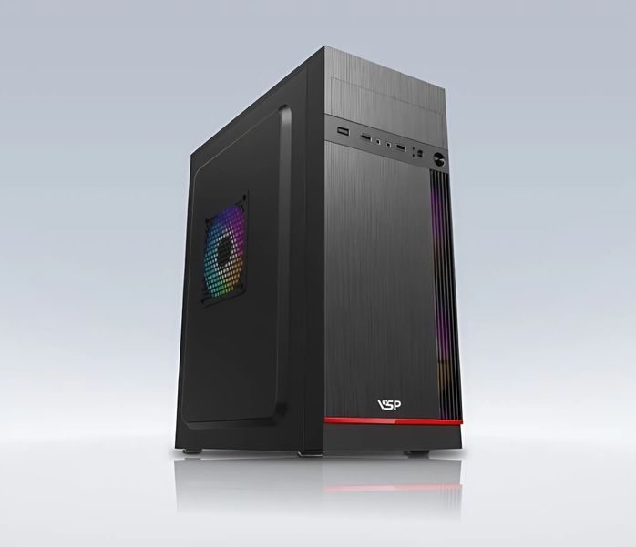 Vỏ case VSP V3718 sở hữu thiết kế tối giản nhưng không kém phần sang trọng, phù hợp với môi trường văn phòng và cả không gian làm việc cá nhân. Với tông màu đen chủ đạo, vỏ case tạo cảm giác chuyên nghiệp và dễ dàng kết hợp với các linh kiện khác. Phần mặt trước được thiết kế theo dạng lưới giúp tăng khả năng hút gió, cải thiện hiệu suất làm mát cho toàn bộ hệ thống.